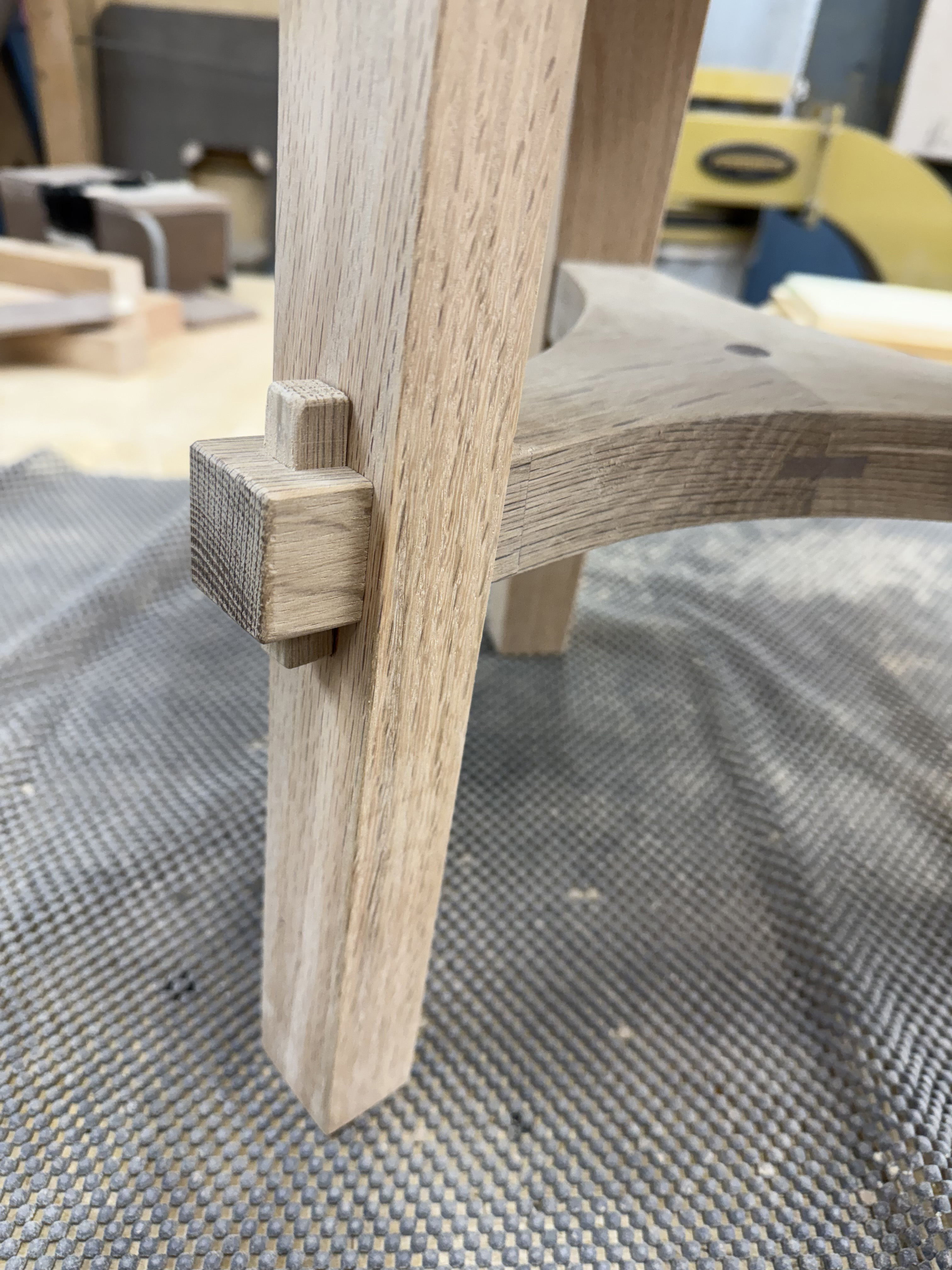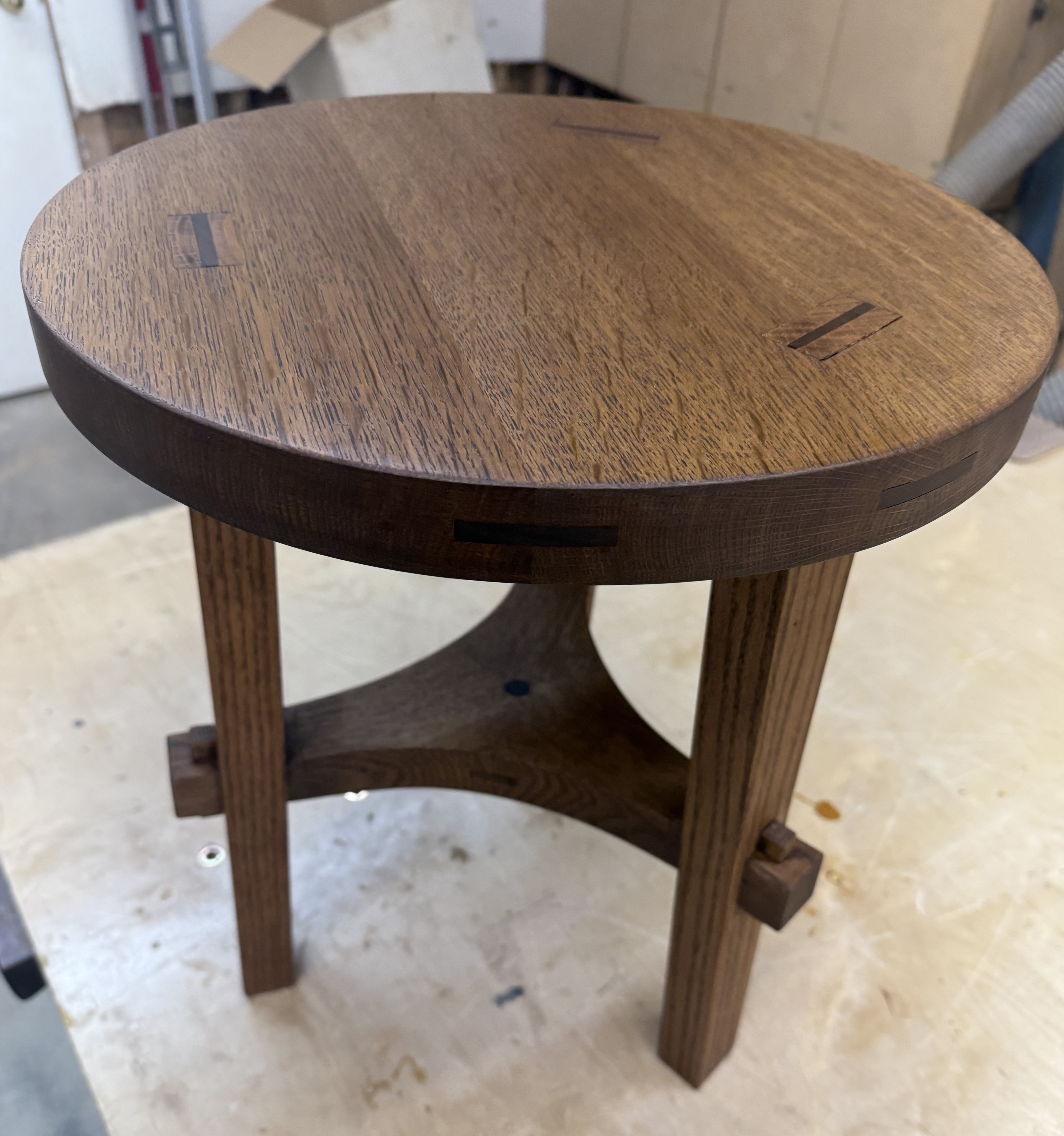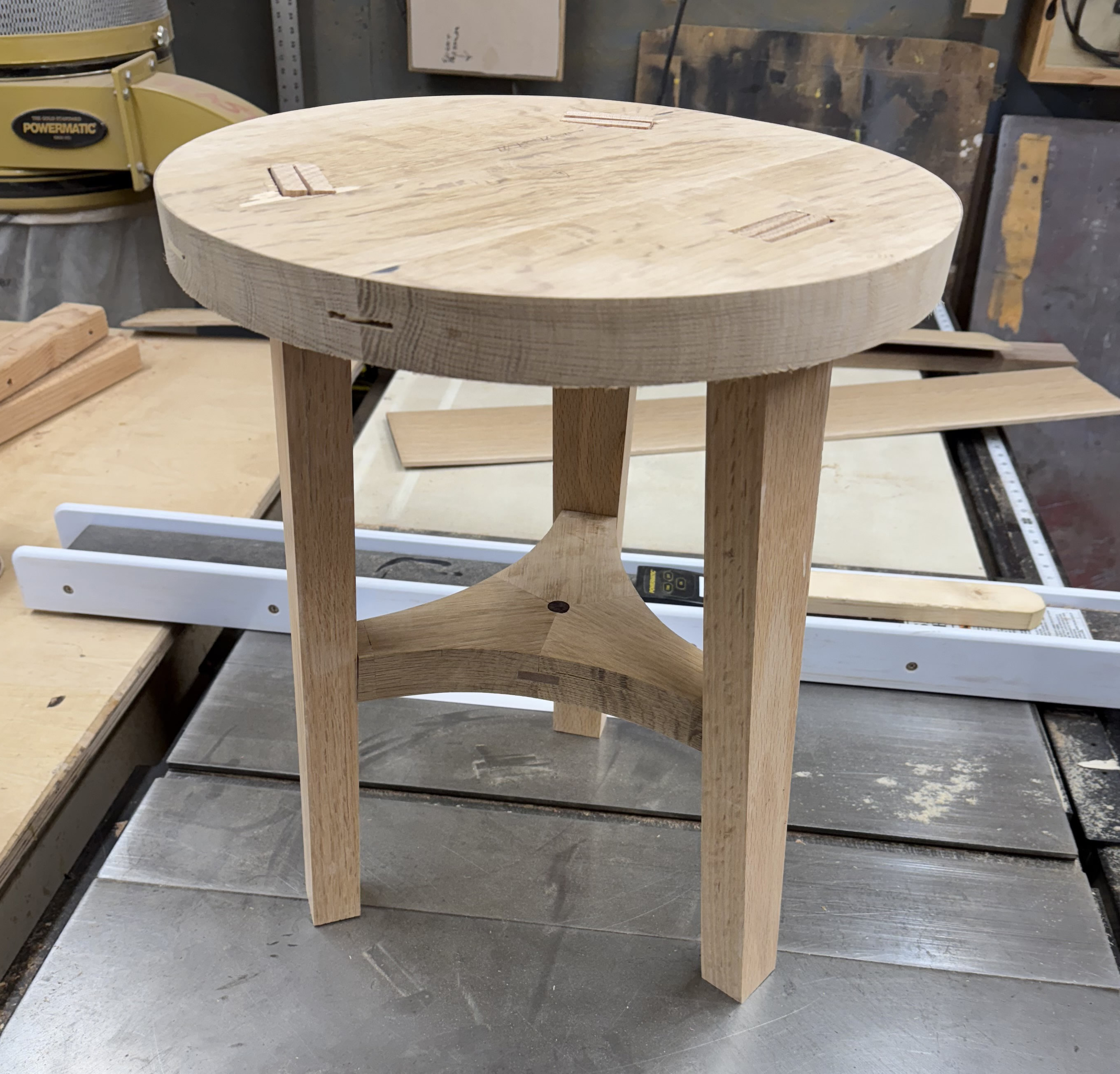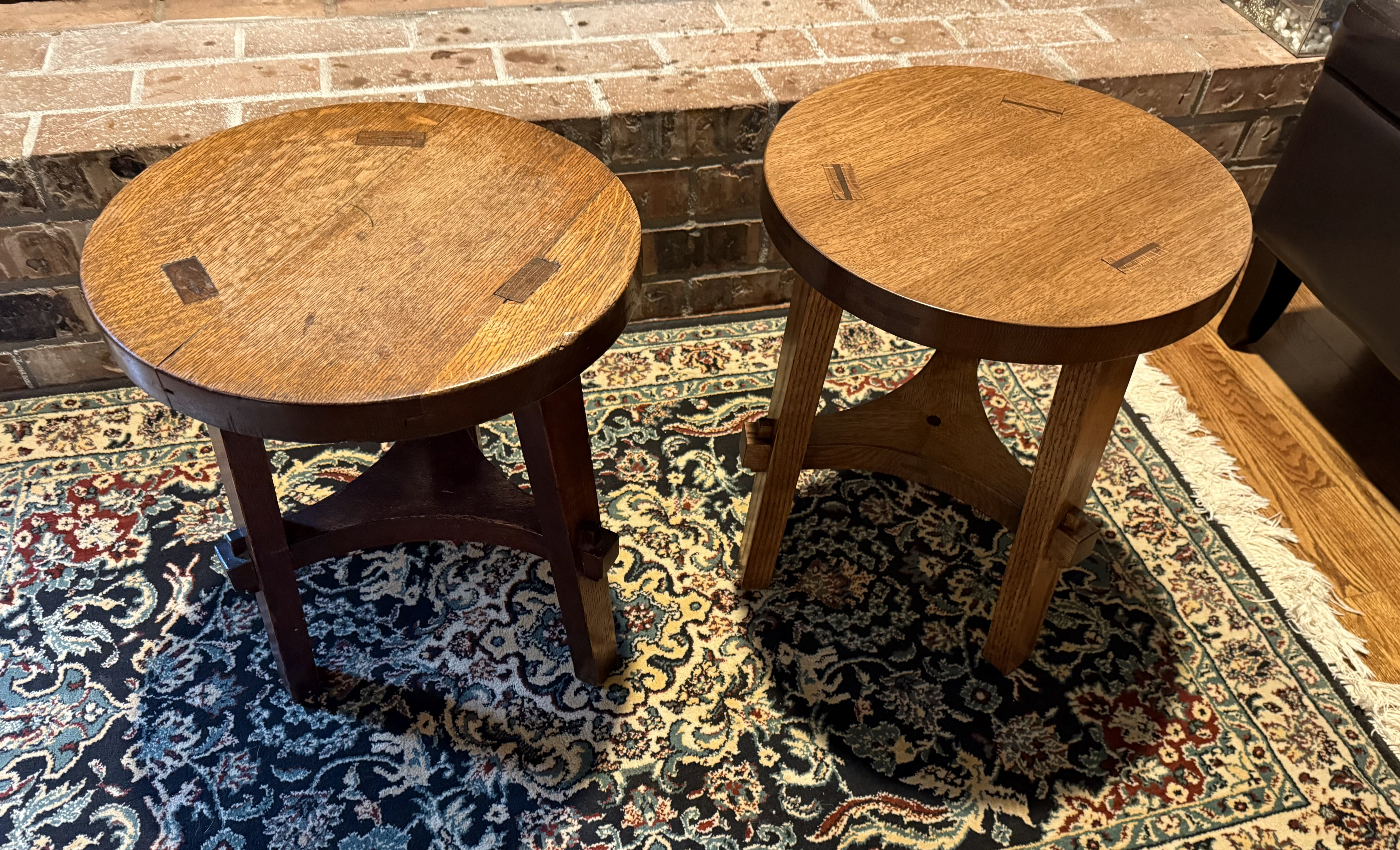 When we were first married we took a trip to visit a friend in Indiana. While there, we visited several antique markets. We found a very unique antique Milking Stool. So, we bought it and brought it back home with us. 50 years later I decided to make a replica of the Milking Stool, using the same joinery and many of the same antique woodworking methods. |