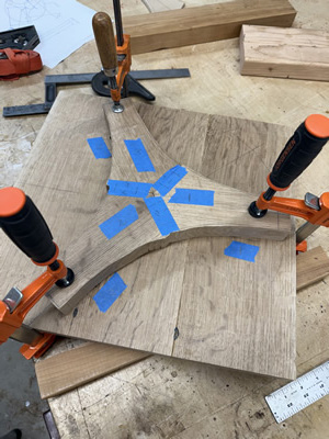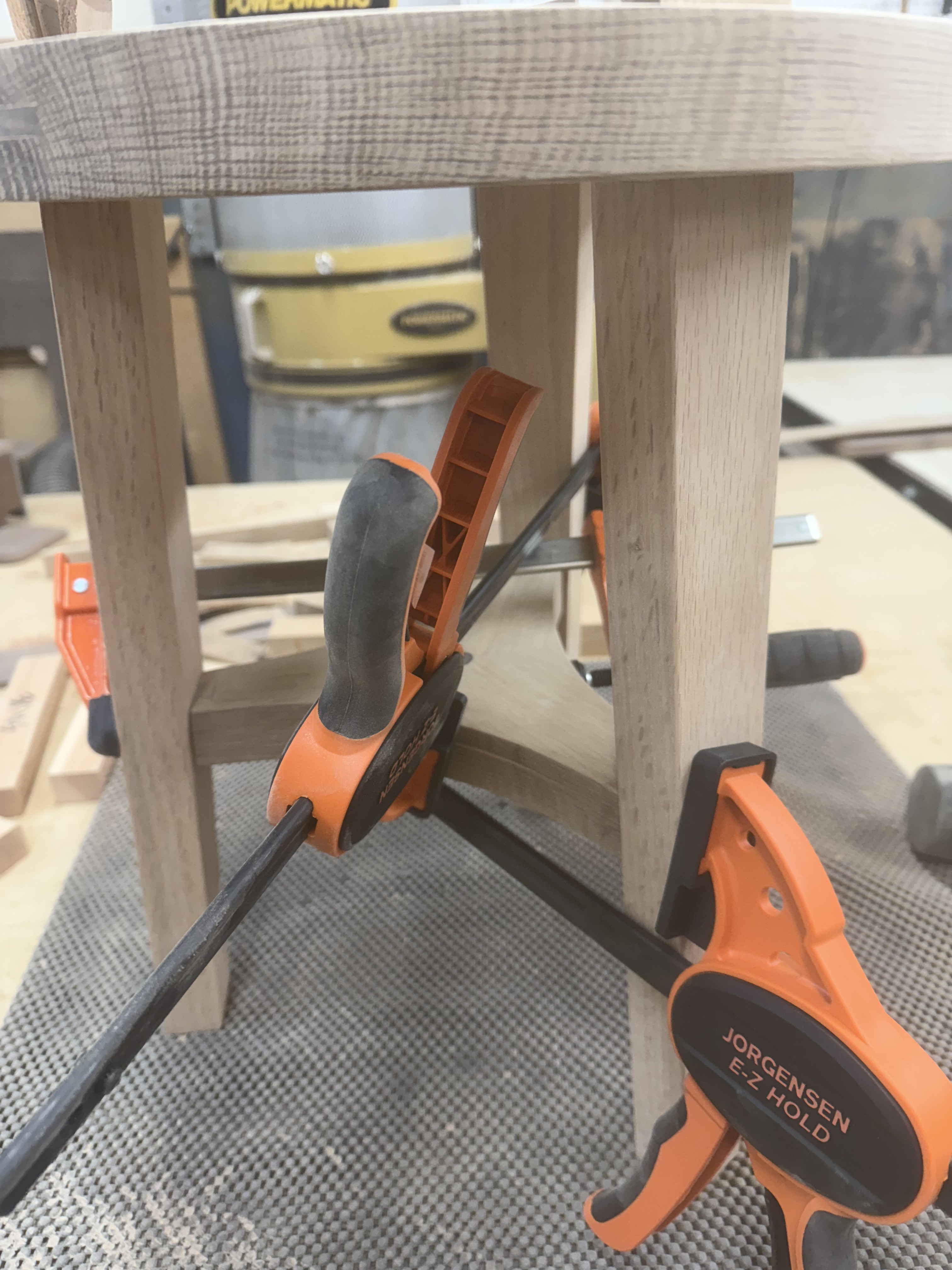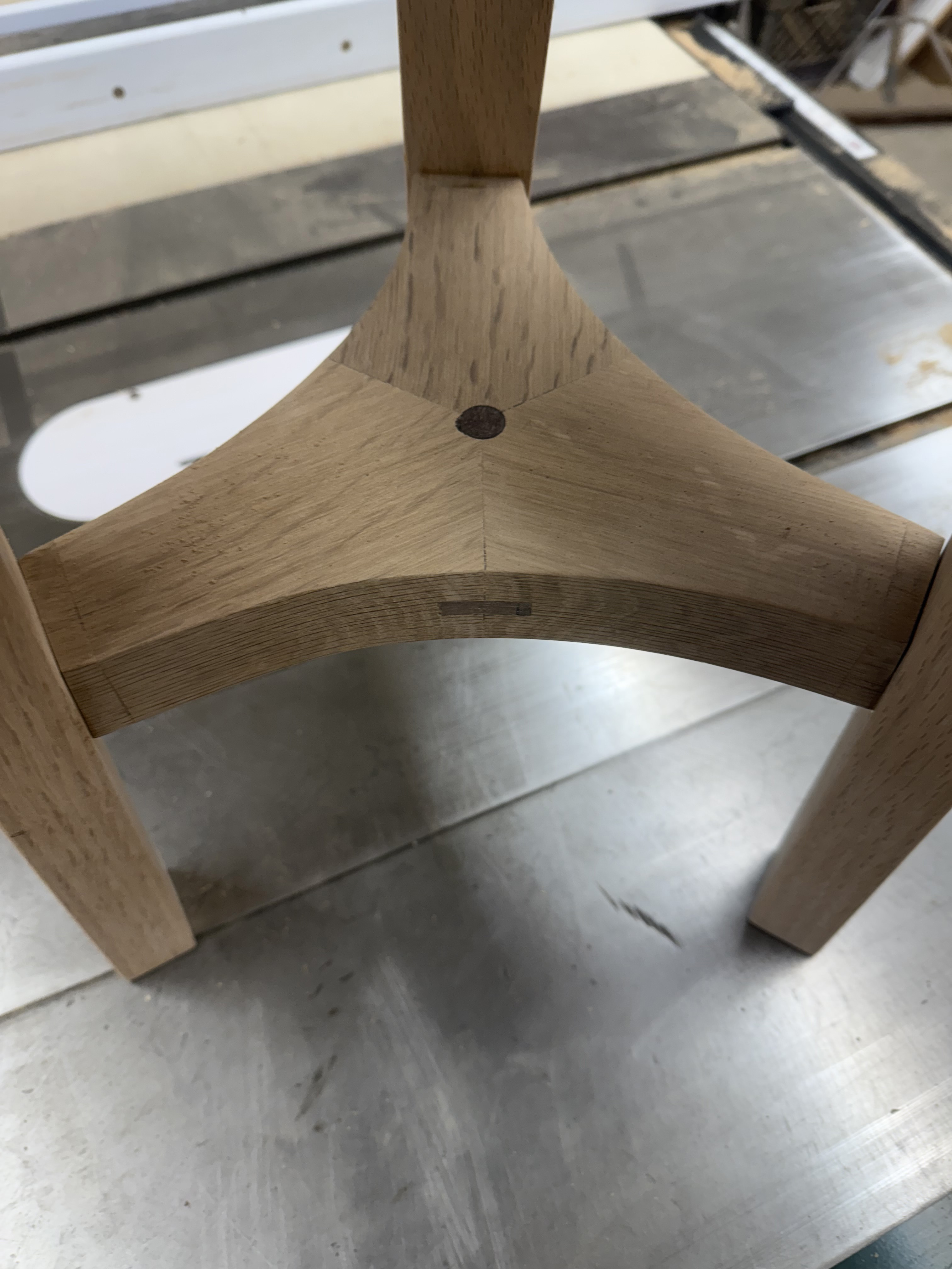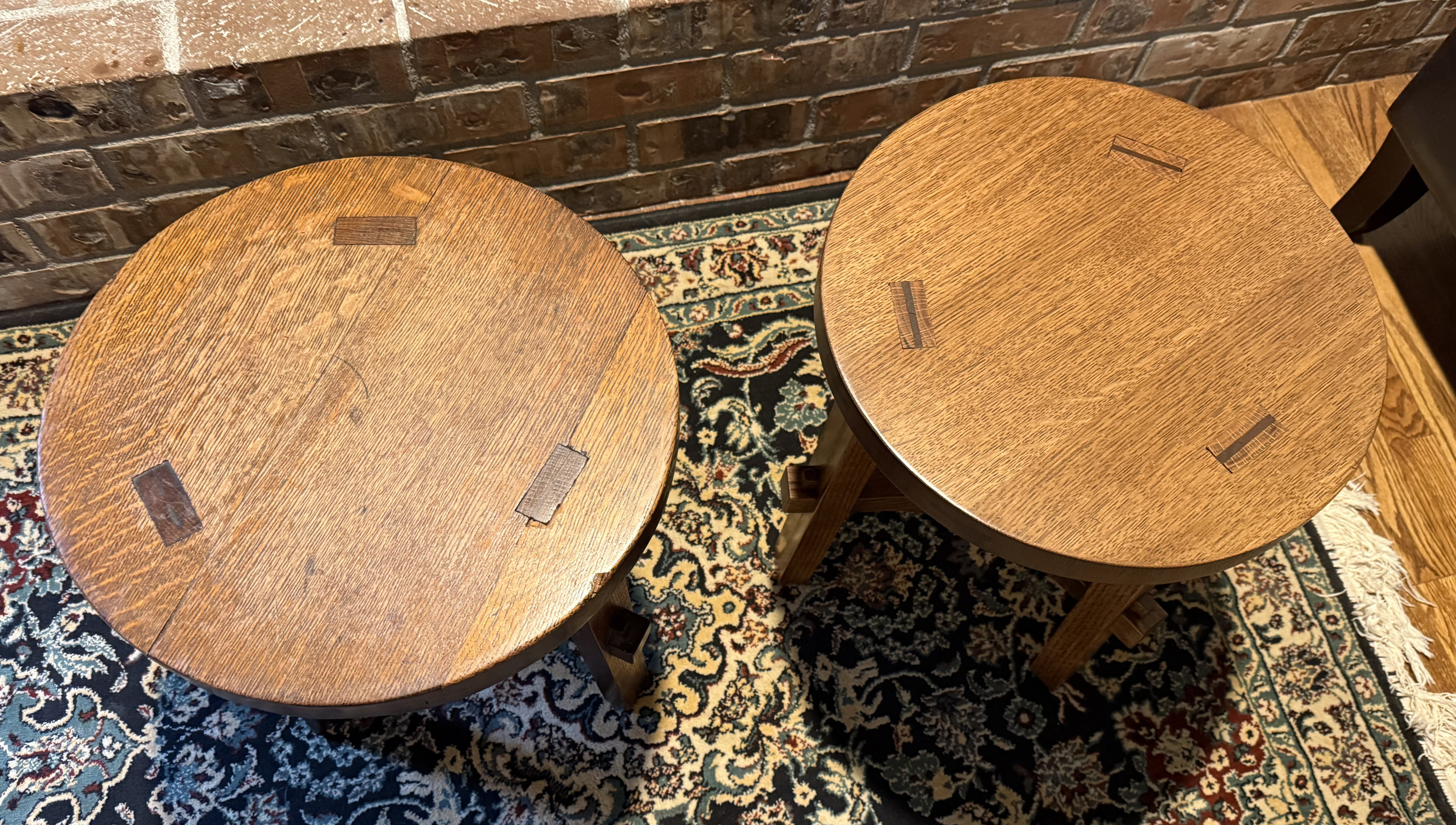 When we were first married we took a trip to visit a friend in Indiana. While there, we visited several antique markets. We found a very unique antique Milking Stool. So, we bought it and brought it back home with us. 50 years later I decided to make a replica of the Milking Stool, using the same joinery and many of the same antique woodworking methods. |
